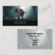 Cartões de visitas profissionais com uma fotografia de um elefante asiático com orelhas redondas em pé numa floresta se desfilando em direção ao espectador, com a luz solar descendo pela cobertura das árvores.