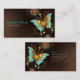 Cartão De Visita Elegância luxuosa borboleta marrom turquesa dourad