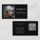 Elegant Black Script QR Code Photo Makeup Business Card.