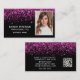 Cartão De Visita Elegant Hot Pink Glitter Photo QR Code