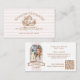 Elevate your bakery or pastry brand with this Chic Stripe Floral Cupcake Business Card, a French-inspired design perfect for cake designers, cupcake shops, patisseries, and boutique bakeries. The front features a hand-drawn floral cupcake illustration combined with regal serif fonts and elegant hand-lettered script typography, creating a sophisticated yet approachable look. A hand-drawn banner is incorporated seamlessly into the business name for added charm and uniqueness. The back showcases an arched photo with a hand-lettered banner, allowing you to display your first and last name in style, along with a custom QR code and contact information for easy connection with clients. The chic blush and white stripe background adds a French boutique feel, making this card both elegant and playful. Perfect for cake designers, bakers, pastry chefs, patisserie, café owners, and small bakery businesses, this card makes a lasting impression and is fully customizable to showcase your brand’s personality. Design and hand-drawn illustration by © Moodthology Papery