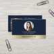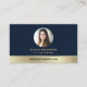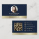 Cartão De Visita Elegant Navy Blue Gold Logo QR Code Photo