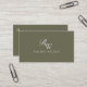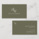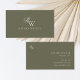 Create your own custom business cards with personalized monogram initials in elegant modern typography on olive green color background. Add all of your contact information for clients, customers and associates.