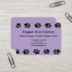Make a professional first impression with this elegant and playful business card for your cattery. Featuring a soft lavender background, a black paw print border, and clear text layout, this card is fully customizable with your name, contact info, and opening hours. Perfect for cat breeders, pet sitters, or feline care professionals who want a stylish and memorable design.