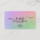 A premium, elegant business card on matte paper featuring a rainbow-colored monogram and rounded corners.