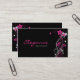 Cartão de visita elegante com design floral cor-de-rosa e preto. Este cartão está pronto para a personalização com sua informação do negócio. Todo o texto pode ser alterado - mude o estilo, cores, tamanhos, adicione ou remova campos do texto para serir suas necessidades. Se você precisa alguma ajuda por favor de enviar por correio electrónico Kirsty em kirsty_pargeter@yahoo.co.uk