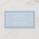frente: seu nome e endereço (ou qualquer outra informação adicional) e profissão personalizada... retângulo branco num tom ligeiramente mais escuro de azul... um conceito visual simples e moderno para uma apresentação na moda