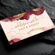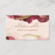 Crie uma impressão duradoura com este cartão de visita elegante que apresenta um design cativante de mármore em aquarela em rosa suave e burgundy rico, acentuado com brilho dourado cintilante. As ondas abstratas e os detalhes metálicos luxuosos criam um visual sofisticado e artístico, perfeito para mostrar sua criatividade e especialização como artista de cabelo e maquiagem. A fonte de letra elegante destaca seu nome e serviços, tornando este cartão um item memorável para potenciais clientes.