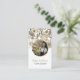 Cartão De Visita Elegante Código QR de Foto Floral Branco e Bege Lo