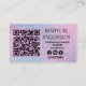 Faça uma declaração com esses cartões de visitas elegantes e modernos, perfeitos para artistas e técnicos. Com um incrível gradiente de brilho em matizes de pasta mole, esse design combina perfeitamente a estética moderna com a funcionalidade profissional. O texto ousado "LASHES" e a atenção especial do desenhar, enquanto o código de QR digitalizável fornece um toque inovador para acesso instantâneo aos seus serviços ou portfólio. Ideal para especialistas em extensão de lash ou profissionais de beleza que procuram deixar uma impressão duradoura. Essas cartas são práticas e visualmente impressionantes, mostrando sua marca com uma vibração moderna, elegante e na moda.