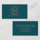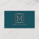 Este cartão de visita apresenta um moderno e elegante design de monograma rosa de ouro falso em um fundo teal. Personalize com seu próprio texto.