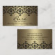 Este elegante Cartão de visita personalizável apresenta um design preto e ouro damask.