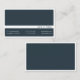 Um cartão de visita minimalista em azul-cinza escuro. Este design mínimo mostra o nome, assim como todas as informações de contato na parte frontal do design. Este cartão de visita tem uma aparência elegante e minimalista, que seus clientes e parceiros comerciais apreciarão, pois mantém o foco em seus detalhes de contato.