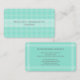 Faça uma primeira impressão memorável com um na moda e um cartão de visita elegante. A design de xadrez de de folha de , rustica e turquesa, com tipografia de cinzas apresenta suas informações de contato com estilo profissional de chic. Adequado para empresários freelance, consultores, pequenas empresas ou profissionais de escritório corporativo, este cartão simples e mínimo é uma tendência e eterno. Todo texto é simples de personalizar para qualquer profissão.