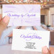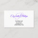 Este design frontal de cartão de visita profissional apresenta um plano de fundo de aquarela roxa cremoso com nome comercial. O verso mantém o nome do profissional com a letra inicial monograma e informação. Personalize os campos de texto, remova qualquer texto ou clique em personalizar para selecionar um estilo de tipo, tamanho e cor desejados.