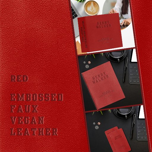 Personalize e personalize este elegante cartão de visita de couro vegano vermelho-faalso com três camadas de tipografia em diferentes tons para simular o aspecto gravado. Um cartão de apresentação ousado, mas profissional e sofisticado para os seus funcionários executivos, Conselhos e funcionários.