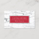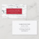 Cartão de visita elegante com um olhar de mármore prateado e branco, com uma etiqueta de criminoso com seu nome e profissão.