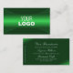 Cartão De Visita Elegante Verde esmeralda com borda prateada e logo