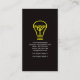 No verso, o logotipo de uma lâmpada elétrica amarela está no topo, seguido dos detalhes do contato e de duas opções de slogan para anunciar sua empresa.