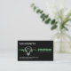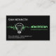 Um cobrir preto apresenta um raio elétrico verde luminoso que liga uma lâmpada. Dentro a lâmpada é a primeira legenda de slogan "Me Chame" que você pode mudar para atender às suas necessidades de serviço. O relâmpago atinge seu título de eletricista e a segunda legenda de slogan. Altere os comentários de legenda para esses dois itens para adequá-los às suas próprias necessidades. No topo está seu nome prestigioso com os detalhes de contato no lado oposto, na base do cartão.