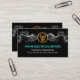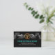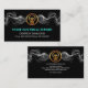 No verso, o mesmo design é usado com o logotipo dourado no topo, seguido do seu prestígio nome, dos seus contatos e de uma opção de slogan para divulgar seus serviços.