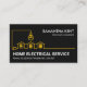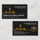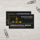 Cobrir apresenta um design de fiação elétrica para casa amarelo criativo. No canto superior está o seu nome prestigioso e o título do cargo, com o nome comercial e seus detalhes de contato perto da base do cartão.