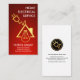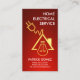 Um cobrir vermelho com uma vinheta suave destaca um design de lâmpada elétrica ouro criativo. No topo está o nome comercial com seu nome prestigioso e detalhes de contato perto da base.