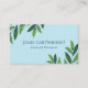 Cartão de visita verde em azul claro, verde e branco com folhas em diferentes tons de verde e azul para um terapeuta, psicólogo ou similar.