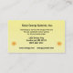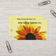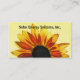 Este cartão de visita é um anúncio para uma empresa de equipamentos e instalações de energia solar. A frente apresenta um lindo girassol laranja, amarelo e dourado bem aberto contra um fundo amarelo pálido. Todo o texto pode ser personalizado para ajustado das suas necessidades pessoais de negócios.