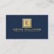 Cartão De Visita Ênfase Geométrica Azul e Dourada do Marinho Modern