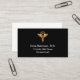 Cartões de visitas clássicos, porém simples, do tema médico Enfermeiro Registrado criados com um símbolo de tom caduceus dourado com um gráfico halo angélico e um simples layout editável personalizado de três linhas que você pode personalizar online. Projetado para uma enfermeira que trabalha no campo da saúde doméstica, uma enfermeira visitante ou enfermeira de serviço privado.