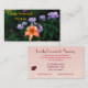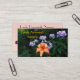Esta cartão de visita anuncia um berçário de flores perene. Apresenta um cheio de jardim de luz, sombra e cor. Os lírios laranja e dourado são disparados por lilás pálidas e magenta escura. Muitas tonalidades de moldura verde as cores adoráveis. Todo o texto pode ser personalizado para ajustado de suas necessidades pessoais de negócios.