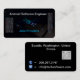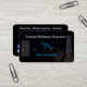 Este cartão de visita preto premium identifica um desenvolvedor de software Android experiente que busca uma função de desenvolvimento de aplicativos de Mais velho em uma empresa tecnológica líder. A placa fornece informações de contato para um profissional especializado na criação e otimização de aplicativos móveis baseados em Android. O perfil de designação sublinha a competência do candidato neste domínio.