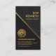 No verso de um cobrir de cinza, o logotipo dourado está no topo, seguido do seu nome, dos seus dados de contato e de uma opção de legenda de slogan. Todas as letras estão em ouro falso.