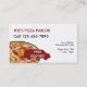 Está aqui o modelo de cartão de negócios da entrega da pizza de w projetado com uma imagem da pizza e uma camionete de entrega com texto que você pode personalizar para sua sala de estar de pizza em qualquer lugar no mundo.
