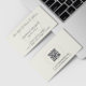 Na moda e sofisticado advogado no modelo de cartão de negócios do escritório de advocacia apresentando um fundo de textura listrada em creme. Acentuado com uma escala sutil de marca d'água da justiça, ideal para uso por empresas de direito corporativo. Inclui um código QR para conveniência adicional.