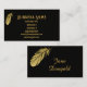 Cartão De Visita Escritor Clássico Preto de Caneta de Penas Dourada
