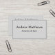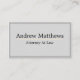 Cartão de visita elegante, simples, profissional, personalizável para empresas e advogados com texto em estilo de fonte simples em um fundo de cinza sólido. A amostra de texto é mostrada para um advogado, mas é perfeita também para fotógrafos, designers de moda, decoradores e outras ocupações criativas.