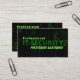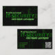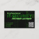 O cartão de visita de segurança de TI favorito para cibercrime e cibersegurança profissionais com elegante fundo de matriz verde mostrando texto "Segurança de TI profissional" para especialistas reais em tecnologia de informação. Elegante Modelo de cartão de negócios Premium Personalizado para você e seus serviços na aura digital de cibercrime, proteção de dados, segurança da Internet, proteção de identidade e análise de fraude e sistemas de firewall. Mostre sua experiência em serviços de tecnologia da informação com esses cartões de visitas de segurança da TI, se você for um especialista profissional em cibersegurança de TI. Dê uma olhada neste Modelo de cartão de negócios Premium totalmente personalizável e personalize texto, estilo, cores, tamanhos para ajustado de suas necessidades. Se você tem uma pergunta design ou gostaria de ver este design em outro produto, por favor, sinta-se à vontade para me contactar!