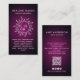 Cartões de visitas celestiais para profissionais do bem-estar holístico apresentam uma ilustração radiante do rosto do sol e da lua que simboliza o equilíbrio, a intuição e a cura de energia — ideal para serviços como alinhamento chakra, leituras intuitivas, treino espiritual e terapia de cristal. O rico gradiente violeta estabelece um tom poderoso e sereno que se alinha perfeitamente às práticas focadas na paz interior e na transformação. A tipografia serif limpa proporciona uma aparência polida e profissional, enquanto um código QR digitalizável colocado de forma destacada melhora a funcionalidade moderna, permitindo acesso instantâneo a sites, páginas de reserva ou perfis sociais. Este design baseado em mística é perfeito para curandeiros de energia, trabalhadores de luz e guias metafísicos que buscam uma presença comercial memorável e significativa.