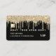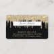 Um cartão de visita elegante no estilo cartão de crédito preto e dourado. Pingos cintilantes dourados sobre um fundo preto sólido. Por favor, note que os elementos cintilantes e holográficos são simulados.
