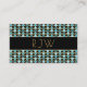 Na moda cartões de visitas inspiradas na era Art Deco. Esta modelo personalizada apresenta as suas iniciais monogramas, juntamente com um padrão geométrico em azul, verde, preto e ouro. No verso, você pode adicionar o nome do cheio e os detalhes de contato. Cartões de visitas são uma forma elegante de trocar informações de contato profissionalmente.