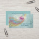 Cartão de visita de estilo retroativo para djs, músicos e outros negócios relacionados à música. Esta emocionante imagem temática musical é um design retrógrado engraçado de um arco-íris de cor pastel com notas musicais escuras e multicoloridas em pedaços de partituras que explodem para fora. Borboletas e placas de tinta parecem explodir a partir do centro. O fundo é um verde escuro esmaecido, estilo de vintage, textura de gradação shabby com letra esmaecida.