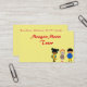 Usando um plano de fundo amarelo, mostre seus serviços de acompanhamento com esses cartões de visitas profissionais. Este design apresenta crianças segurando formas. A personalização é fornecida com modelos. Escolha o seu hoje! Design criado por: AMBilustrações http://www.etsy.com/shop/AMBillustrations/