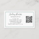 Esta elegante Cartão de visita é decorada com folhas de eucalipto aquáticas em tons macios de verde. Facilmente personalizável com seu nome, detalhes de contato, seu cargo e Código QR. Use a Ferramenta Design para alterar o tamanho, o estilo ou a cor do texto. Porque nós criamos a nossa trabalho de arte, você não encontrará esta imagem exata de outros designers. Original Watercolor © Michele Davies.