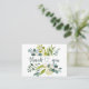 Obrigado pela sua cartão de visita. Este design apresenta uma camada de aquarela com eucalipto verde e galhos verdes. O texto "Obrigado" está escrito no estilo caligrafia. Personalize com seu próprio texto. Você também pode mudar a fonte, a cor e o tamanho.