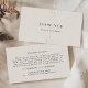 This refined art deco thank you business card from the Everly Collection features minimalist black typography and gold line accents on a soft cream background. It's perfect for an elegant, timeless look.