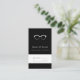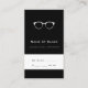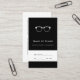 Lembre os pacientes de seus próximos exames oftalmológicos ou consultas visuais com esses cartões de visitas optometria profissional de estilo vertical. Este design apresenta um logotipo de um par de óculos brancos sobre um fundo preto. Personalize acrescentando o nome do oftalmologista ou oftalmologista.