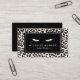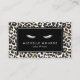 Uma impressão glamourosa sobre leopardo/animal preenche o fundo desta cartão de visita belezada. Um par de pestanas brancas é a marca perfeita para extensões de pestanas, maquiadores, empresas cosméticas, bares de lash e muito mais. Arte e design © 1201AM Design Studio | www.1201am.com