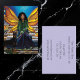 Uma fada com asas laranja e amarelas sentadas sobre passos de pedra que levam talvez ao reino Fada. A Fada Afro-Americana não está sozinha, ela está com o seu cão guardião doberman neste Dia do Outono.